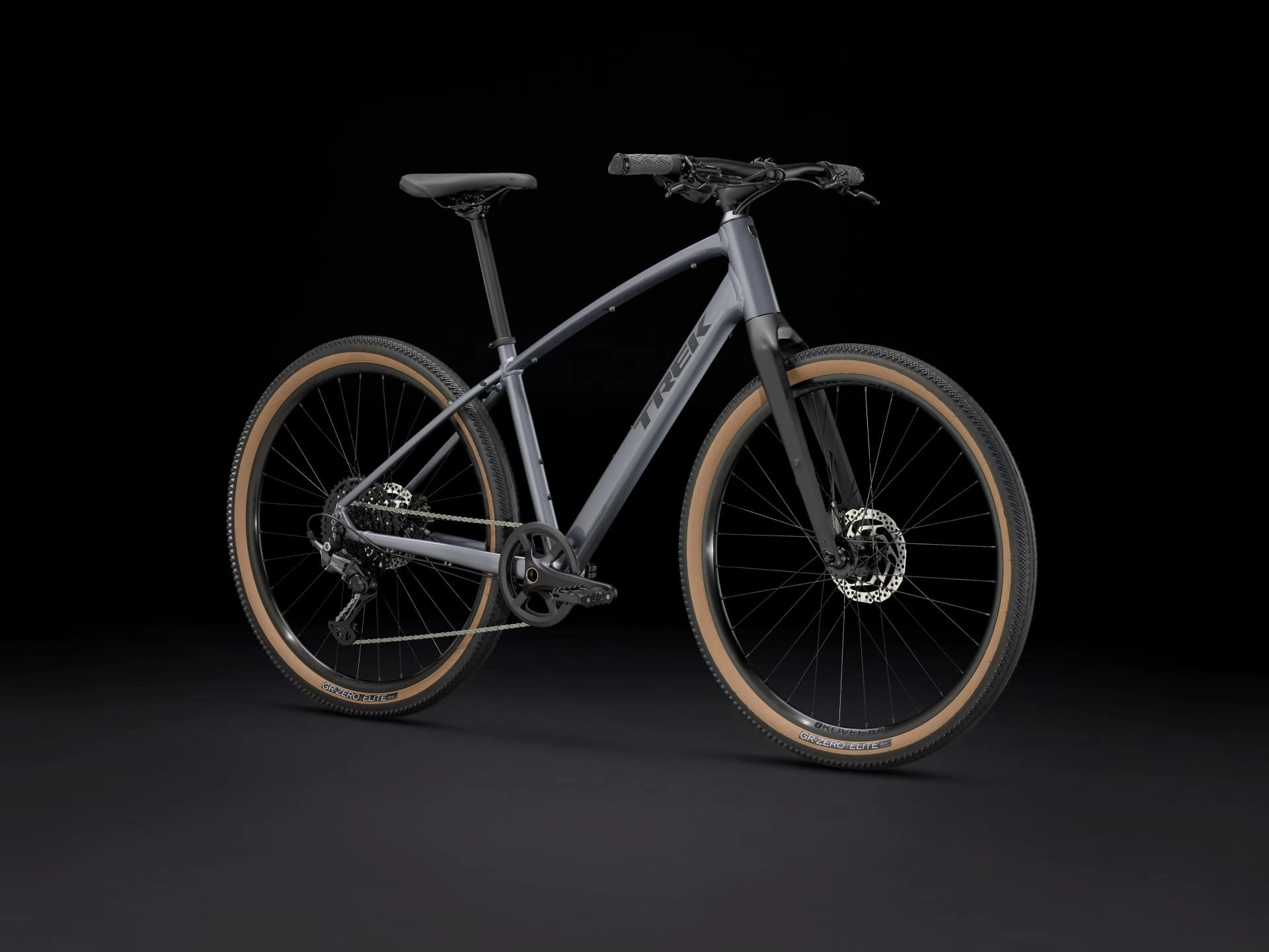 Lekka rama aluminiowa z eleganckim prowadzeniem linek i przewodów, lekki widelec z włókna węglowego, przystosowane do montażu bezdętkowego koła Bontrager Kovee 650b i szerokie opony 50c dla sprawności i komfortu w najróżniejszym terenie, a także prosty i wytrzymały napęd 1x10 Shimano CUES bez przerzutki przedniej dla wygodniejszej obsługi. Nie martw się, kaseta o szerokim zakresie 11-48 zapewnia wszystkie przełożenia potrzebne do pokonania zarówno wzgórz, jak i płaskich odcinków. Do tego mocne hamulce tarczowe i uchwyty na bagażnik i błotniki.
