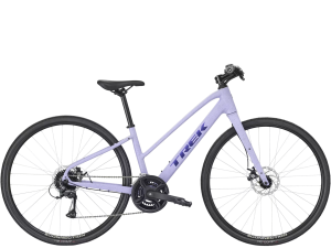 Ma lekką ramę z aluminium o geometrii z obniżoną rurą górną, co ułatwia wsiadanie i zsiadanie, a ponadto widelec z włókna węglowego i mocne hamulce tarczowe działające w każdych warunkach. Dzięki napędowi Shimano z ośmioma przełożeniami nigdy nie pedałujesz zbyt ciężko lub lekko, a punkty mocowania ułatwiają dodanie akcesoriów do maszyny.